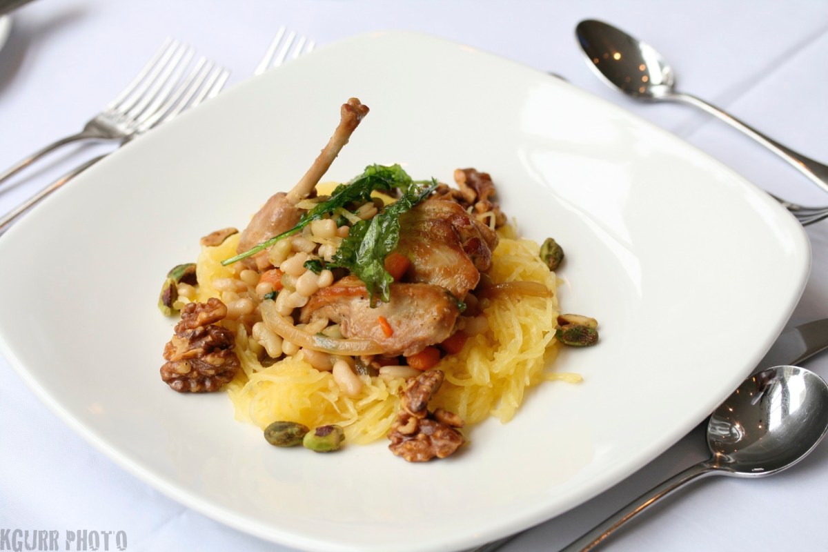 image September 5, 2017 at 1944 × 1296 Rabbit Cassoulet of Flageolet Beans with Walnuts and Pistacios on Speghetti Squash
