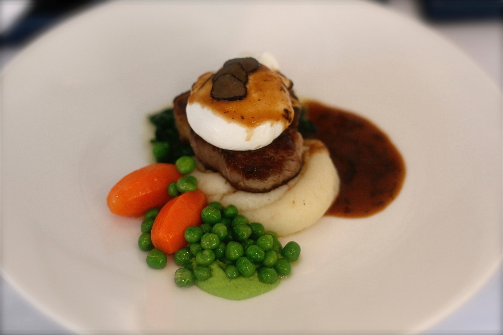 image September 5, 2017 at 1944 × 1296 Filet of Beef, Perigueux Sauce, Pommes Puree, peas and carrots